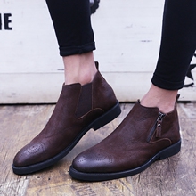 切尔西男靴冬季擦色布洛克雕花真皮短筒马丁靴男英伦男士尖头皮靴