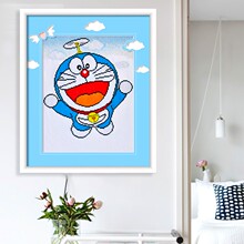 春天印花十字绣卡通动漫哆啦A梦机器猫简单小幅新款儿童房十字绣