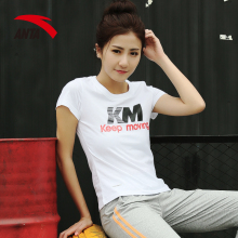 安踏t恤女装运动短袖2017春夏季新款字母圆领速干棉女运动t恤上衣