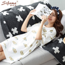 斯服玛睡裙女春季纯棉休闲宽松家居服甜美可爱短袖卡通清新睡衣夏