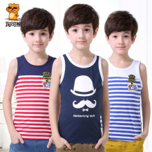 淘可熊男童背心儿童夏装潮棉无袖T恤条纹童装圆领中大童背心新款