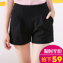 西装休闲短裤女夏韩版高腰显瘦大码宽松黑白a字松紧腰阔腿休闲裤