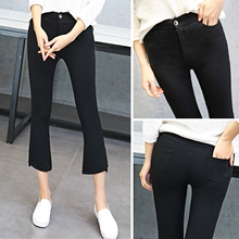 春装新款复古高腰九分微喇叭裤韩版显瘦大码哈伦休闲裤阔腿裤子女