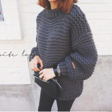 2016秋冬新款韩版宽松女装高领/圆领 中长款打底针织衫