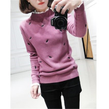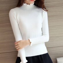 秋冬新款女装韩版上衣荷叶边半高领套头针织衫打底衫毛衣女冬厚