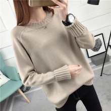 雪花玲秋冬新款宽松圆领套头毛衣女秋冬款韩版长袖百搭打底针织衫