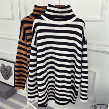 女高领针织套头开叉毛衣韩版条纹百搭蝙蝠袖宽松时尚显瘦针织衫