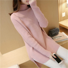 秋冬新款加厚外套针织衫中长款长袖毛衣女套头高领打底衫女装修身