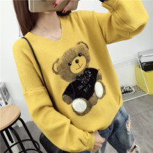 v领宽松针织连帽衫女长袖秋冬装2016新款潮套头毛衣韩版女装上衣