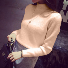 冬装新款2016韩国纯色开叉加厚保暖半高领女套头打底毛衣针织衫女