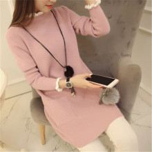 2016秋冬新款韩版打底针织衫中长款荷叶边领连衣裙长袖套头毛衣女