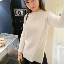 2016秋冬新款韩版开叉学生半高领套头毛衣女弹力宽松针织衫打底衫