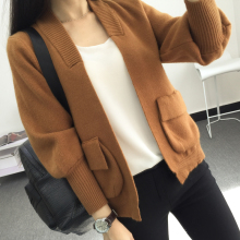 2016新款秋装女毛衣外套韩版短款圆领宽松显瘦口袋针织衫开衫女