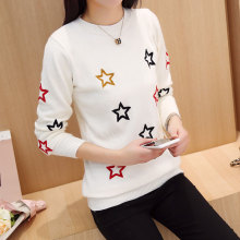2016秋季新款女装圆领打底韩版百搭修身刺绣套头针织衫女毛衣外套