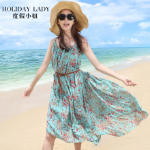 度假小姐2017新款女装沙滩裙海边度假连衣裙雪纺裙子泰国裙
