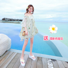 马尔代夫夏甜美仙女露肩雪纺连衣裙海边度假裙子短裙沙滩裙海滩裙