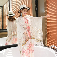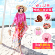 夏仙女白色雪纺连衣裙系带防晒开衫大码显瘦波西米亚度假沙滩长裙