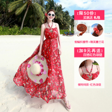 夏雪纺吊带印花沙滩裙海边度假裙波西米亚长裙大码胖mm显瘦海滩裙