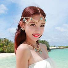 一秒变女神 波西米亚 绿松石流苏发带发箍头饰 海边度假百搭