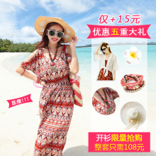 夏泰国女2017新款雪纺显瘦连衣裙波西米亚长裙海边度假海滩沙滩裙