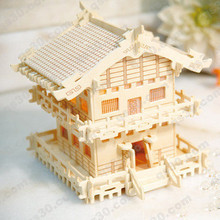 木制仿真手工DIY益智拼装立体拼图玩具 木质中国古建筑物房子模型