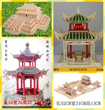 包邮 成人木制模型DIY木质拼装模型3D立体拼图 苏州园林建筑积木
