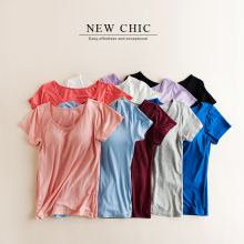 免穿内衣BRA-T文胸一体式无钢圈带胸垫莫代尔纯色短袖女T恤上衣