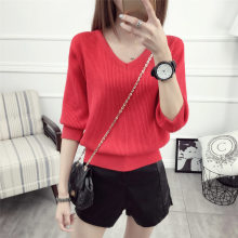 2016 韩版V领套头针织衫学生纯色毛衣百搭短款高腰女上衣潮