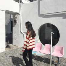 春秋韩国chic复古百搭韩风宽松慵懒款条纹针织衫毛衣外套女上衣潮
