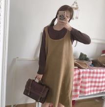 春秋女装韩版宽松加厚长袖套头毛衣+中长款针织衫背心连衣裙学生