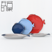 无名印象 鱼盘陶瓷盘子蒸鱼盘釉下彩日式餐具创意家用鱼形盘个性