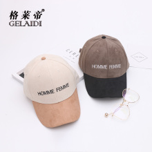 秋冬天麂皮绒帽拼色弯檐棒球帽男女士韩版英文字母刺绣棒球帽潮