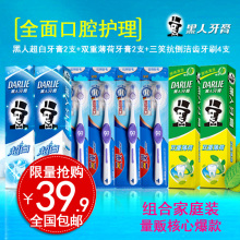 黑人超白牙膏2支+双重薄荷牙膏2支+三笑抗倒洁齿牙刷4支组合套装