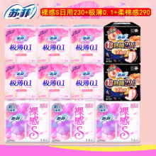 苏菲卫生巾裸感日用230mm+夜用290mm+极薄0.1组日夜姨妈巾组合装