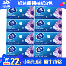 维达纸巾 3层抽纸原木面纸餐巾纸纸婴儿无香卫生纸 8包家用组合