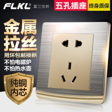 不锈钢拉丝86型五孔开关插座面板墙壁电源二三插家用安全5孔套餐