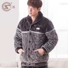 三昌冬季男士睡衣 珊瑚绒夹棉男家居服套装休闲保暖棉袄居家套装