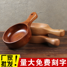 包邮 日式手把碗泡菜碗 个性创意勺沙拉碗木碗 实木整木大碗餐具