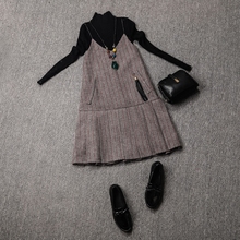 欧洲站2017春装新款背带裙女连衣裙两件套因为遇见你张雨欣同款