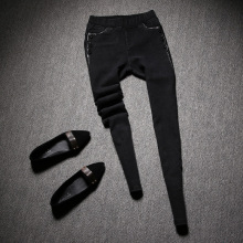 欧洲站2016冬装欧货潮松紧腰小脚裤高腰加绒加厚牛仔裤女裤子2097