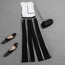 欧洲站夏装女装2017新款欧货潮气质阔腿裤套装洋气时髦两件套3588