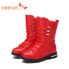 红蜻蜓童鞋2016秋冬新款女童靴真皮马丁靴棉靴女童皮靴中筒靴