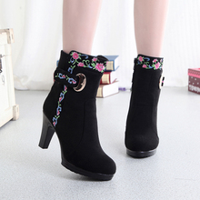 冬季新款正品老北京布鞋绣花女棉靴民族款中国风刺绣女靴子女棉鞋