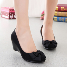 新款正品老北京布鞋女鞋坡跟工装女单鞋工作鞋浅口舒适黑色高跟鞋