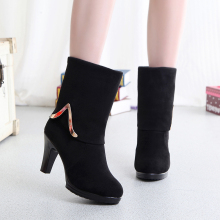 冬季新款正品老北京布鞋 时尚高跟女棉鞋防水台女棉靴工装女靴子