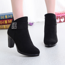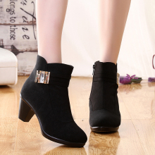 冬老北京布鞋女靴防滑保暖女短靴加厚女棉鞋黑色高跟工装靴时装靴
