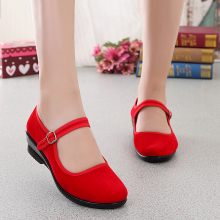 老北京布鞋礼仪鞋广场跳舞舞蹈中跟黑平绒一带女单鞋红舞鞋