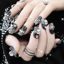 日系 美甲 成品 假指甲贴片时尚黑色钻款新娘 24片假甲片成品包邮