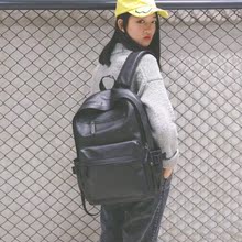 双肩包学院风男女韩版中学生书包 休闲pu皮旅游黑色大背包潮女包