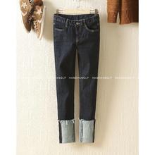 韩国正品代购爆款弹力显瘦卷边九分休闲牛仔裤女16K363B特现货